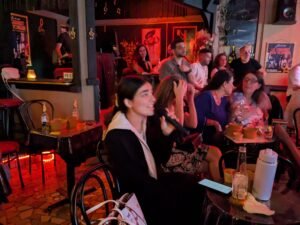 منذ اللحظة الأولى، ساد الدفء أجواء السهرة التي أعادت إلى الأذهان صور الوطن البعيد، حيث قاد الأنغام كلّ من نقولا دكاش على الأورغ، نبيل أبو عاصي على الدرامز، ونزيه أبو الريش على العود. الثلاثي قدّم توليفةً موسيقية متناغمة جمعت الحاضرين على حب الفن الأصيل، وأطلقت العنان لذاكرة جماعية مليئة بأغنيات الطفولة والشباب.