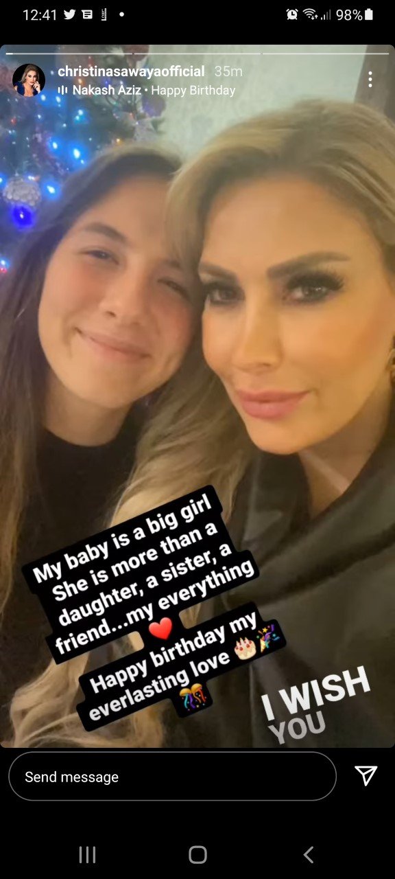 وتوجهت كريستينا بكلمات مؤثرة لابنتها حيث كتبت:” ابنتي أصبحت فتاة كبيرة انها بالنسبة لي أكثر من ابنة وشقيقة وصديقة انها كل شيىء. عيد ميلاد سعيد حبي الأبدي”.
