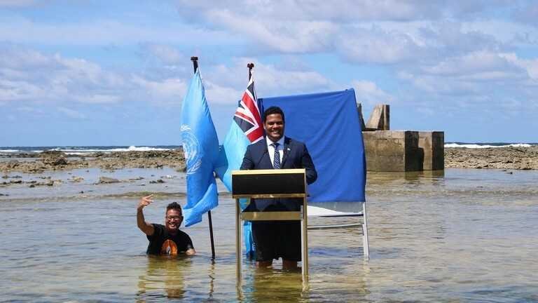 وسجل وزير خارجية دولة توفالو الواقعة في منتصف الطريق بين جزر هاواي وأستراليا، كلمة موجهة إلى قمة الأمم المتحدة للتغير المناخي، وهو يقف داخل مياه المحيط.