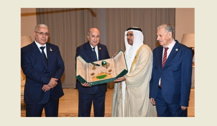 منح رئيس البرلمان العربي عادل بن عبدالرحمن العسومي “وسام القائد” لرئيس الجمهورية الجزائرية الديمقراطية الشعبية عبد المجيد تبون، وهو أعلى وأرفع الأوسمة التكريمية والتقديرية التي يقدمها البرلمان العربي لقادة الدول العربية، في حضور رئيس المجلس الشعبي الوطني الجزائري إبراهيم بوغالي، رئيس مجلس الأمة الجزائري صالح قوجيل وعدد من المسؤولين في الجمهورية الجزائرية.