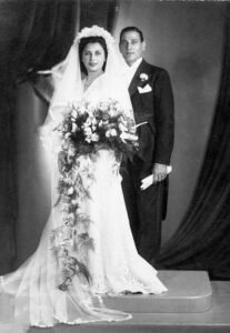 بعد اسبوعين قررنا كتب الكتاب وفي هذه الاثناء كانت تذهب لتحضير الجهاز مع والدتها ووالدتي واحياناً اختي ولما بات كل شيءجاهز، ولم يكن باستطاعتنا اللقاء بحرية، قررنا الزواج قبل حلول شهر رمضان المبارك وكان يوم جمعة من العام 1940 ، واذكر يومها اننا دعونا اقرب المقربين والجيران والاهل الذين رافقوا جهاز العروس يوم الخميس وحضروا الزفاف في اليوم التالي الذي تم في بيت والدي وسط باقات الزهر والزغاريد ووزعت الحلوى لنذهب بعدها الى بيتنا الزوجي الذي لم نتركه يوماً.