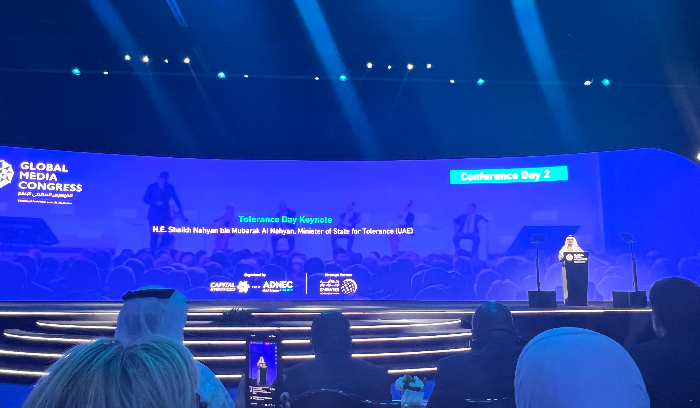 يواصل مؤتمر “الكونغرس العالمي للاعلام” بنسخته الاولى اعماله في ابو ظبي. وقد افتتح اليوم الثاني تحت شعار اليوم العالمي للتسامح، بكلمة لوزير التسامح والتعايش الاماراتي الشيخ نهيان بن مبارك آل نهيان شدد فيها على سعي الامارات الدائم لترسيخ قيم التسامح ومبادىء الانفتاح وقبول الآخر والتعايش معه، مشيرا الى الميثاق الذي تم توقيعه عام ٢٠١٩ في ابو ظبي بين قداسة البابا فرنسيس وشيخ الازهر الشيخ احمد الطيب.
