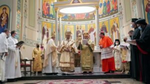 وختم قائلا “بشكر لطفكم ومحبّتكم، وكلّ من تعب واجتهد للتحضير للقداس،لقد قلت لسيدنا إبراهيم: الناس هون طيبة ومحمّسة للشغل، وخاصّة أنو الكلّ عم يشتغل بفرح كأنّو الأبرشيّة بيتو. كلّ الشكر الكن أحبّتي. رح تسمعو هالكلمة كتير من هلق ورايح: أحّبتي، لأنّو أنتو سبقتوني بالحب من قبل ما إجي لعندكن ومن قبل ما شوفكن وأتعرّف عليكن. بشكر كلّ يللي إجو من بعيد من كهنة ومجالس رعويّة تيشاركونا هالمناسبة الفرحة. بشكر الربّ يسوع والعدراء مريم عليكن كلكن.”