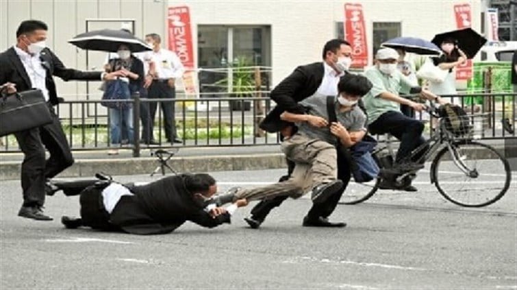 وأطلق المهاجم تيتسويا ياماغامي البالغ من العمر 41 عاما رصاصتين من خلف السياسي الياباني، من مسافة حوالي 10 أمتار، وبعد الطلقة الثانية سقط آبي.
