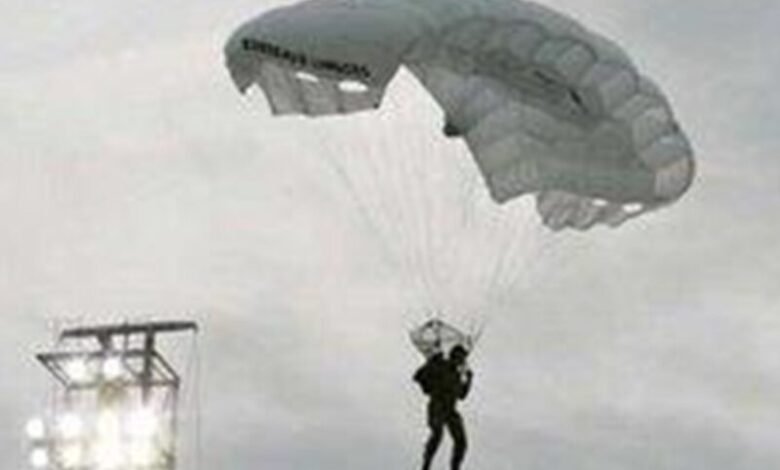 بالفيديو: مظلي يهبط في ملعب كرة قدم أثناء سير المباراة!