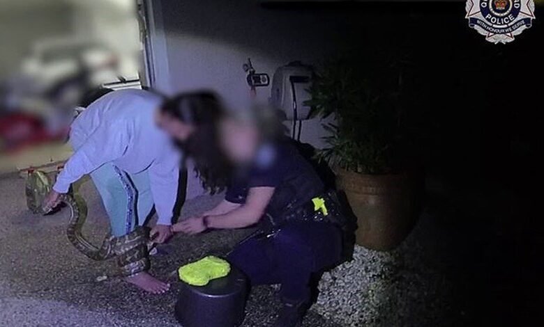 اتصلت امرأة من شمال غرب مدينة بريزبين الأسترالية بشرطة كوينزلاند بعدما التفّ ثعبان حول ساقها.