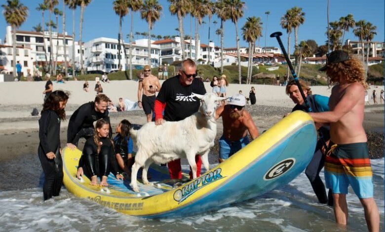 تعرّفوا إلى بيسمو … ماعز يساعد الأطفال على ركوب الأمواج