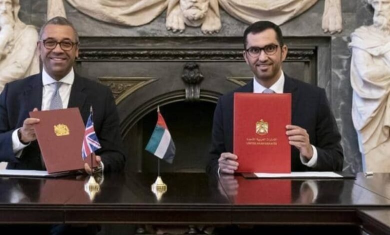 وجرى توقيع الاتفاقية من سلطان الجابر، وزير الصناعة والتكنولوجيا المتقدمة، والمبعوث الخاص للتغير المناخي بدولة الإمارات وجيمس كليفرلي، وزير شؤون الشرق الأوسط وشمال إفريقيا في المملكة المتحدة.