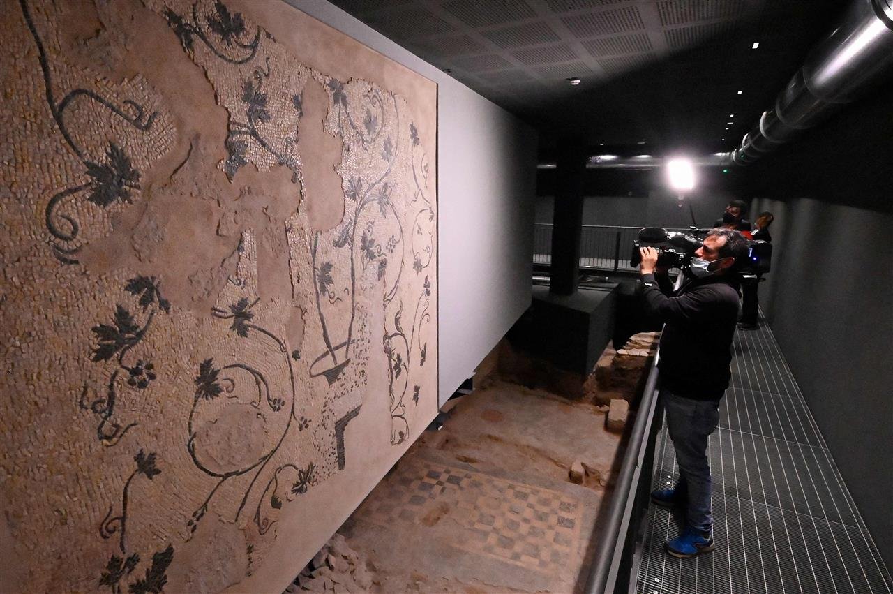 وتصوّر الفسيفساء كرمة تتسلل حباتها من أوان وأنماطا هندسية بالأبيض والأسود وببغاء أخضر لامع يقف على فرع شجرة وقال ناردوتشي مبتسما “نحن هنا داخل مبنى خاص حيث كانوا يخططون لبناء ثمانية مواقف للسيارات” ولفت ناردوتشي إلى أن مخطط مواقف السيارات أرجئ بعد اتفاق مع “بي إن بي باريبا” الذي مول أعمال الحفر.