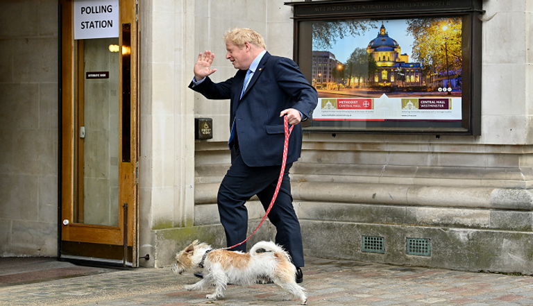 وكان جونسون قد اصطحب كلبه، أيضا في 12 ديسمبر/كانون الأول عام 2019، أثناء الإدلاء بصوته في الانتخابات البرلمانية المبكرة في بريطانيا حينها.