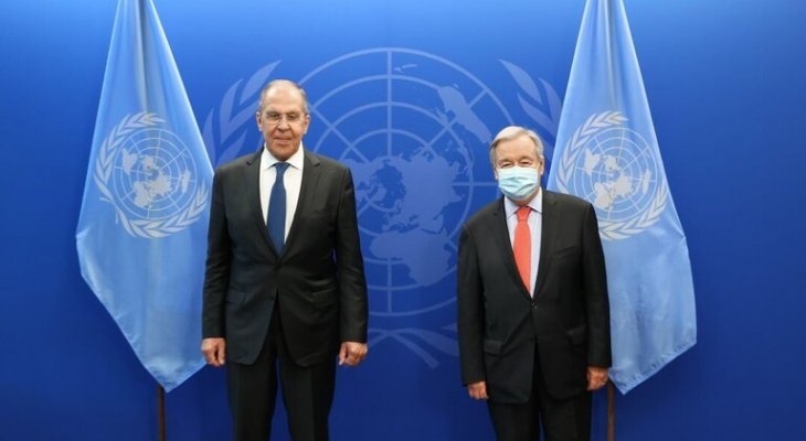 بحث وزير الخارجية الروسي سيرغي لافروف مع الأمين العام للأمم المتحدة أنطونيو غوتيريش جملة من القضايا الدولية، منها أفغانستان وسوريا وليبيا وغيرها.