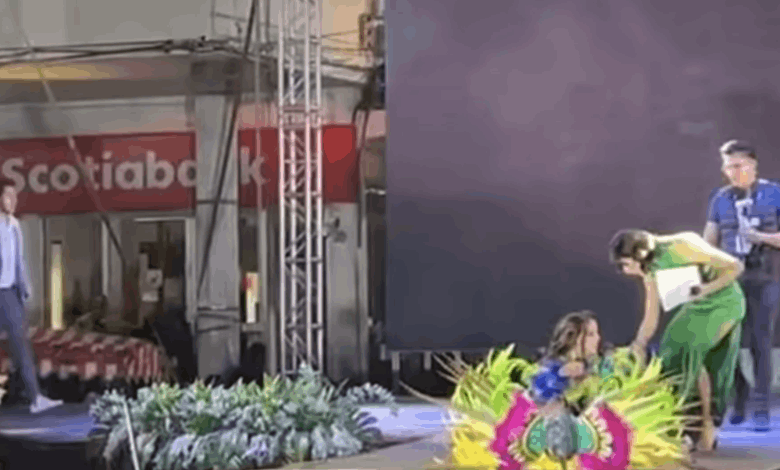 تعرضت فتاة مكسيكية، وهي مشاركة في مسابقة جمالية، الأحد لصعقة كهربائية على خشبة المسرح خلال حفل انتخاب ملكة جمال ساهوايو لعام 2022، في ولاية ميتشواكان بالمكسيك.