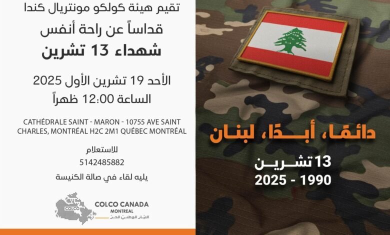 هيئة كولكو مونتريال – التيار الوطني الحر تُحيي ذكرى شهداء 13 تشرين بقداس إلهي في كاتدرائية مار مارون