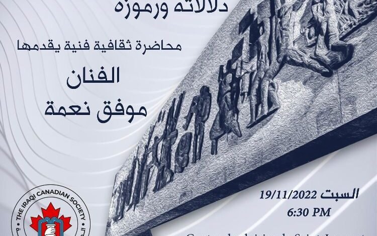 اقامت الجمعية العراقية الكندية امسية ثقافية فنية حملت عنوان “نصب الحرية، دلالاته ورموزه” تحدث فيها وشرح معاني مدلولاتها الفنان المتميز موفق نعمة وذلك في Centre des Loisirs de Saint-Laurent في مونتريال حضرها ادباء، شعراء، اهل الصحافة وحشد من ابناء الجالية العراقية والجاليات العربية من محبي الفن والابداع.