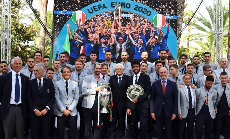 كرّم الرئيس الإيطالي، سيرجيو ماتاريلا، يوم أمس الجمعة، منتخب بلاده لكرة القدم، بعد فوزه ببطولة كأس أوروبا 2020، ومنح مدربه روبرتو مانشيني وأعضاء الفريق وسام الاستحقاق من الجمهورية الإيطالية.