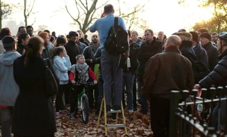 وأضافت شرطة لندن في بيان مساء أمس إن “جهاز الإغاثة اتصل بالشرطة بعد ظهر الأحد في الساعة 15,34 للابلاغ عن اعتداء في موقع سبيكرز كورنر” في هايد بارك. وعثر عناصر الشرطة الذين حضروا إلى المكان على امرأة تبلغ من العمر 39 عاما مصابة بجرح طفيف في الرأس”.