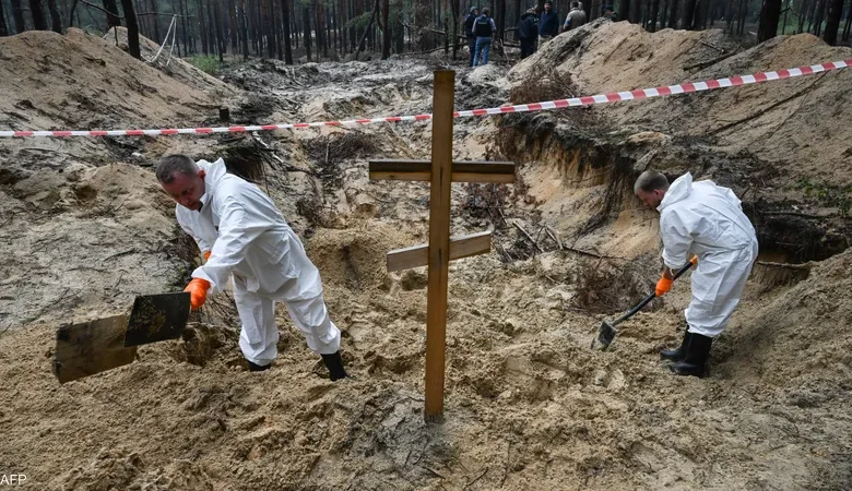 ورأى صحافيون من “وكالة الصحافة الفرنسية” مئات القبور في غابة قرب مدينة إيزيوم بعدما أعلنت كييف “اكتشاف مقابر جماعية فيها”.