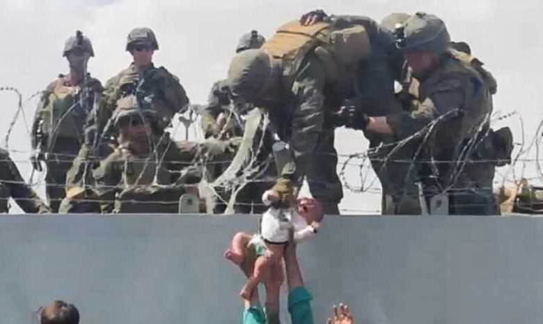 مشهد صادم انتشر في الساعات القليلة الماضية، بعدما احتشد مواطنون أفغان وراء السياج المحيط بمطار حامد كرزاي في العاصمة كابل، مناشدين الجنود الأميركيين والبريطانيين وغيرهم أخذ أطفالهم لإنقاذهم من براثن حركة طالبان التي سيطرت على البلاد.