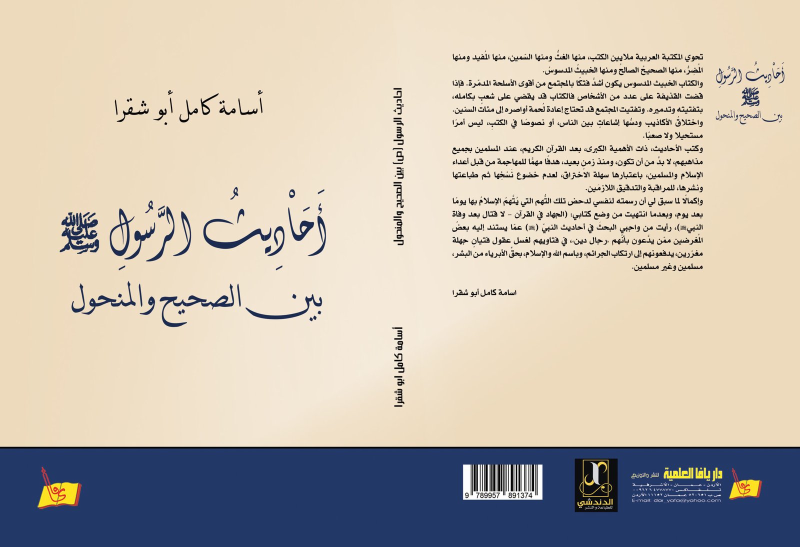 صدر عن دار الدندشي للطباعة والنشر في مونتريال وبالتعاون مع دار يافا العلمية للنشر والطباعة والتوزيع– عمان – الأردن،كتاب جديد للباحث والكاتب أسامة أبو شقرا، حمل عنوان «أحاديث الرسول ﷺ بين الصحيح والمنحول» وهو من الكتب التي تحمل في طياتها محاولة تصحيحية لبعض المفاهيم المستندة الى كتب التراث الاسلامي مع ما يرافقها من ادعاءات طالت الاسلام والنبي معاً.
