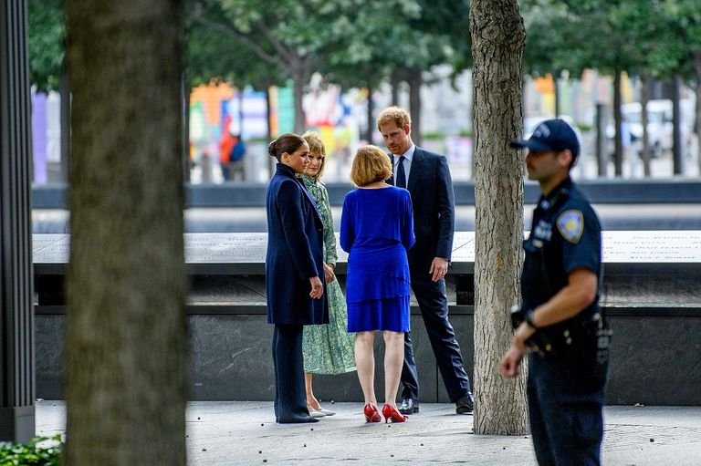 ثم انتقل هاري وميجان لزيارة البركتين المقامتين ضمن النصب التذكاري لاعتداءات 11 سبتمبر/ أيلول، وتحديداً في النقطتين اللتين كان البرجان يقعان فيهما قبل أن تدمرهما في هذا التاريخ من العام 2001 طائرتان خطفهما انتحاريون إرهابيون، وأسفرت هذه الاعتداءات التي أحيت الولايات المتحدة أخيرا ذكراها السنوية العشرين عن 2977 قتيلا.