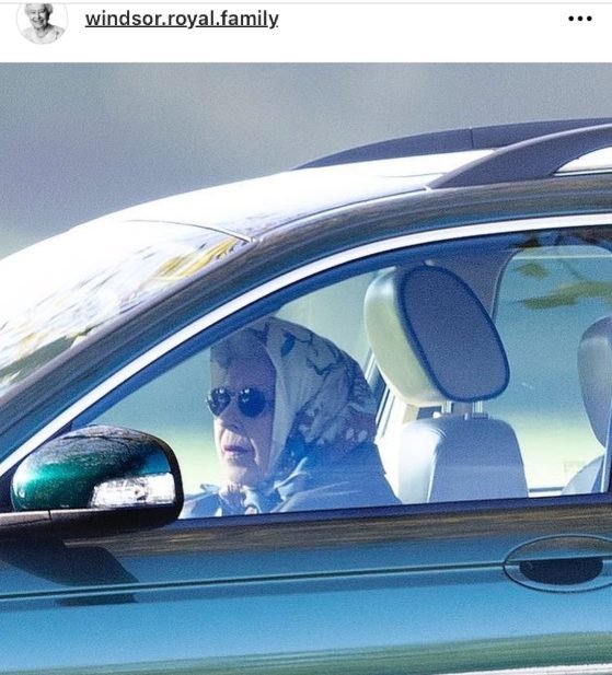 وظهرت الملكة البالغة من العمر 95 عاما في الصورة المنشورة على عدد من مواقع التواصل الاجتماعي البريطانية خلف مقود السيارة بغطاء رأس ونظارة شمسية.