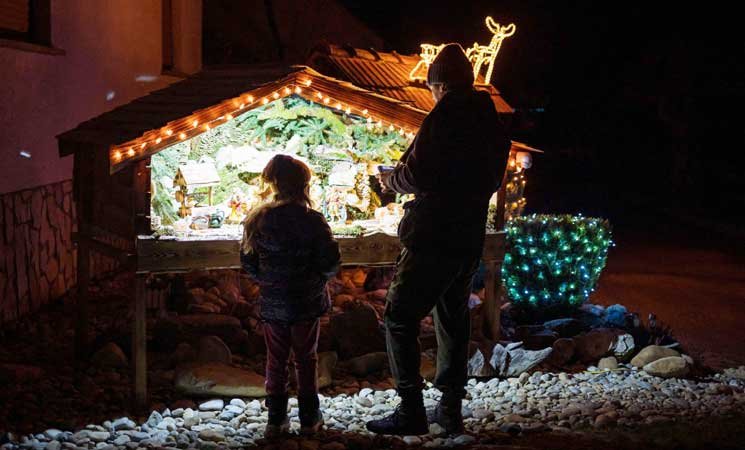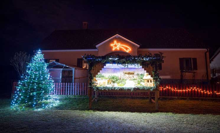 يستقطب سكان قرية سلوفينية مئات الزوار يوميا من خلال عرض مشاهد ميلادية بلمسة شخصية أمام منازلهم، مع تماثيل من شمع العسل ومجسم لطفل المغارة من العجينة المنتفخة وخراف مصنوعة من الصوف.