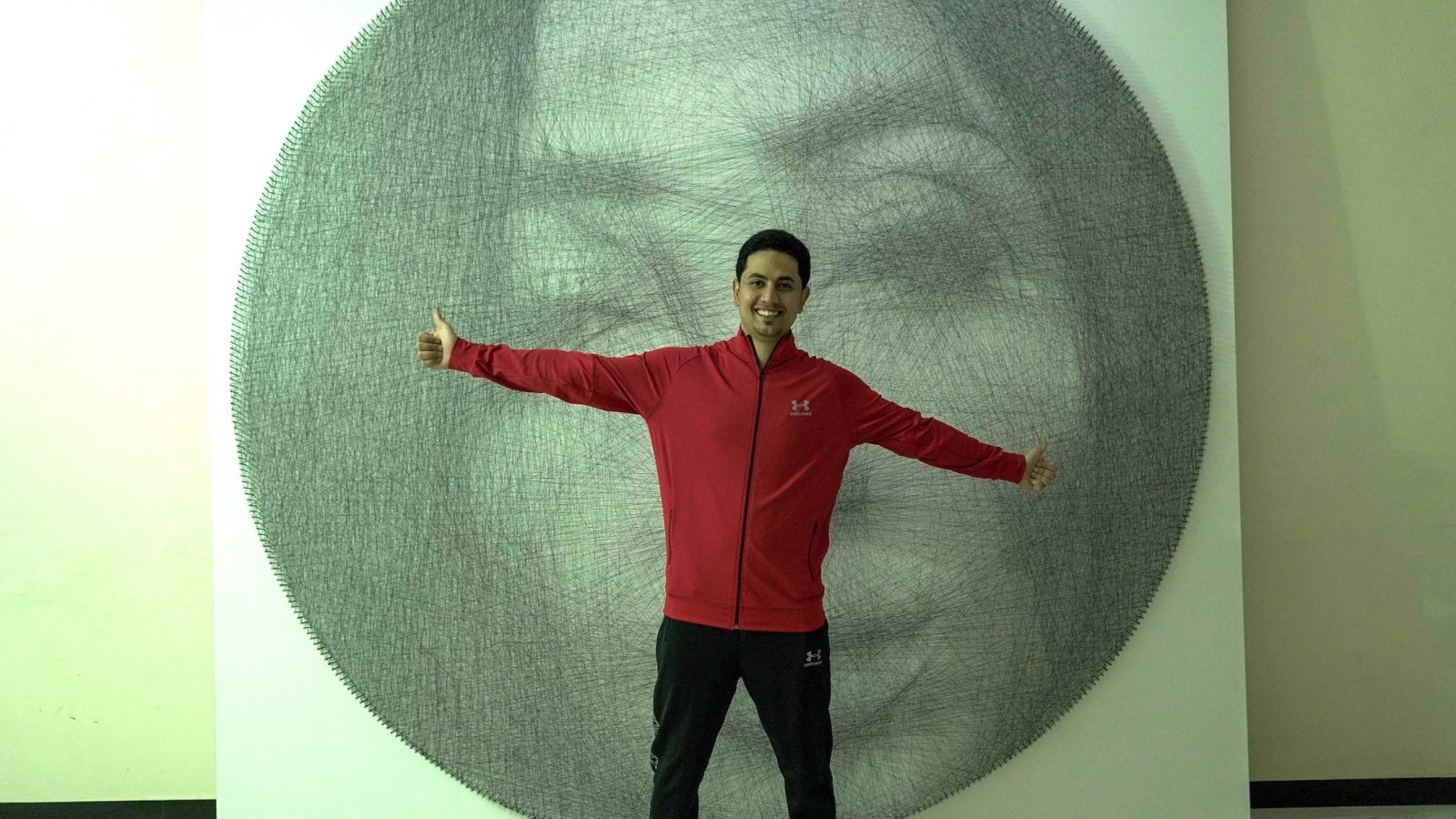 شكّل “هويدي”، صاحب السبعة والعشرين عاماً، صورة أخاذة لملهمة عربية متقبلة لمرض البهاق باستخدام خيوط ومسامير فقط؛ ليحقق بذلك إنجازاً جديداً لأكبر عمل فني بالخيط والمسمار في العالم.