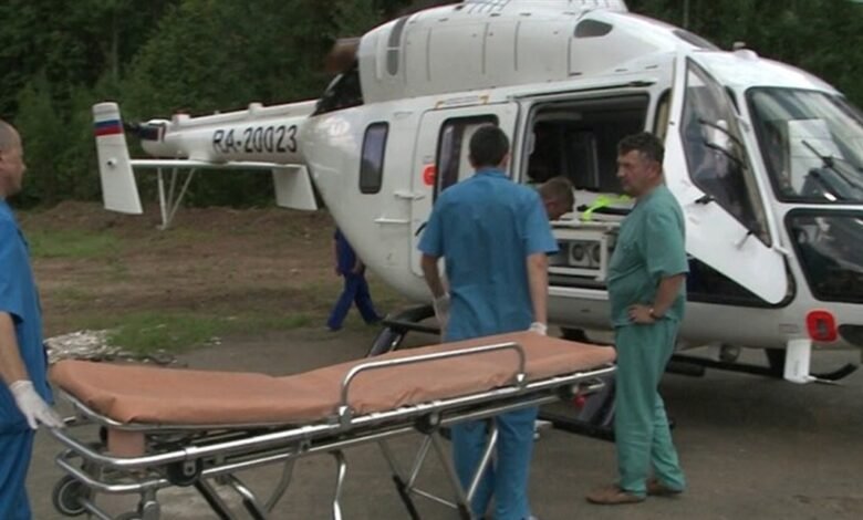 وبدأت الامراة الحامل أثناء الرحلة الجوية إلى المستشفى على متن مروحية الإسعاف تعاني من تقلصات، وتطورت الأوضاع بسرعة، لذلك اضطر فريق من الأطباء من المركز الجمهوري للرعاية الطبية الطارئة إلى تقديم مساعدة الولادة في الجو. وبالنتيجة رأى الولدان النور.