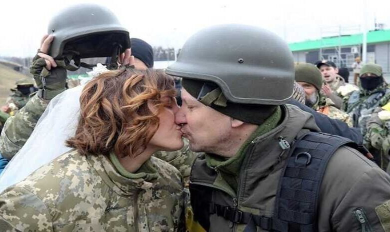 باقة ورد وقبلة… زواج على خطوط القتال في أوكرانيا