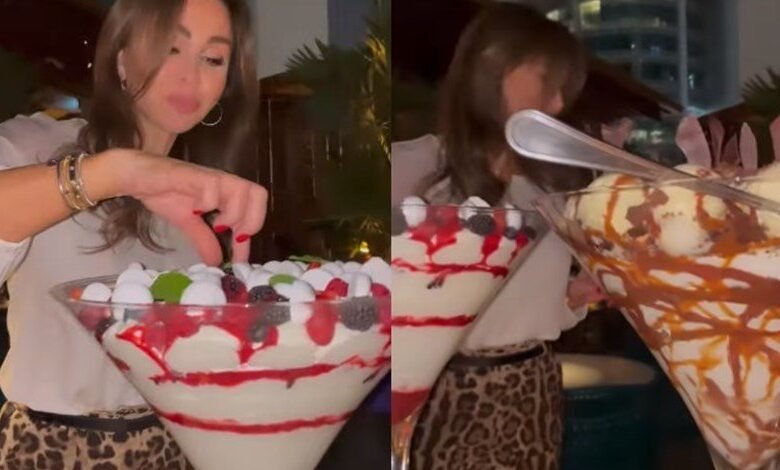 ونشرت كوليت الحلاني فيديو ظهرت فيه وهي تستمتع بتذوّق كأس عملاق من المثلّجات الشهيّة، واكتفت بالتعليق “حان وقت البوظة”.