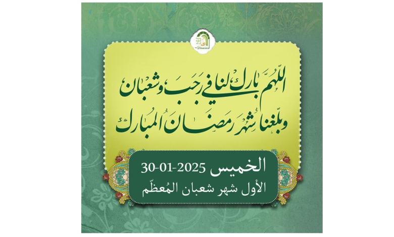 أصدر المكتب الشّرعي في مؤسّسة العلامة المرجع السيد محمد حسين فضل الله، بيانا أعلن فيه “أن يوم الخميس الواقع فيه 30 كانون الثاني هو أول أيام شهر شعبان المعظم ما عدا البلدان الواقعة في شرق الأقصى فيكون بداية شهر شعبان لديها يوم الجمعة وذلك طبقا للمبنى الفقهي لسماحته بالاعتماد على الحسابات العلمية الفلكية الدقيقة..