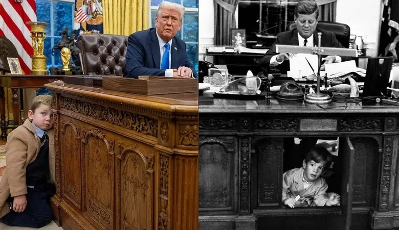 فالطريقة التي انحنى بها “ليتل إكس” كما سمته وسائل إعلام أميركية، على مكتب ريزولوت التاريخي، ذكرت بالطريقة التي شوهد بها الطفل جون إف كينيدي جونيور في صورة شهيرة عام 1962 وهو ينظر من تحت المكتب نفسه.