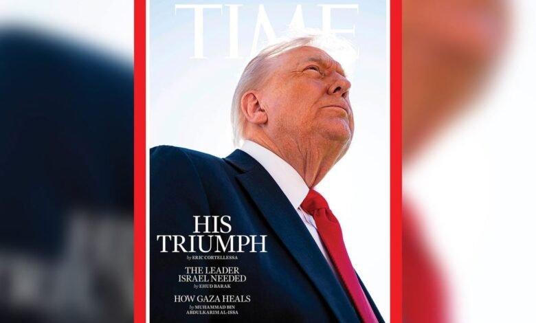 الغلاف جاء بعنوان “انتصاره”، في إشارة إلى مساهمة ترامب في التوصل إلى اتفاق وقف إطلاق النار في غزة، وهو ما وصفته “تايم” بأنه “إنجاز بارز في ولايته الثانية” و”تحول استراتيجي في مسار الشرق الأوسط”.