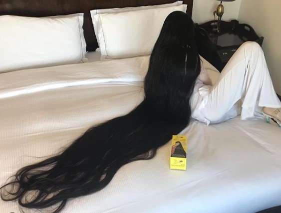 في حين بلغ طول الشعر 5.627 متر عندما جرى قياس طوله في 8 أيار 2004. وكانت مؤسسة غينيس نوهت كذلك إلى أن طول شعرها يعادل طول الزرافة.