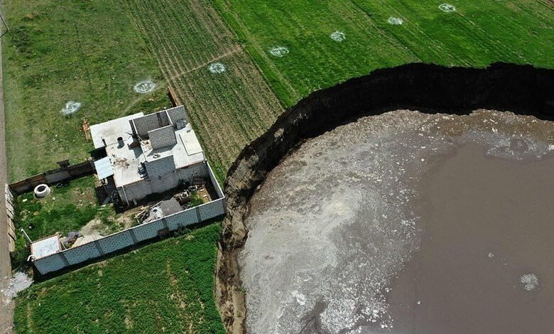 في المكسيك… حفرة عملاقة تهدد بابتلاع منزل مجاور