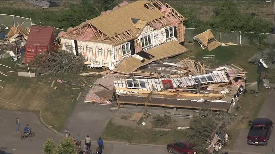 «C’est une tornade qui se déplaçait lentement avec une multitude d’objets dans le ciel. Il y avait des bouts d’arbres, des bouts de toiture, des bouts de métal, c’est assez épeurant quand on arrive dans le secteur», a témoigné à LCN Denis, un résident de Mascouche.