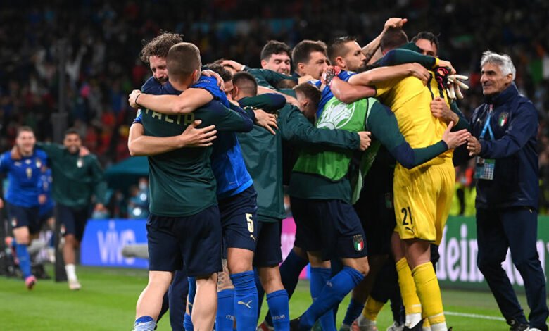 وتأهلت إيطاليا إلى نهائي بطولة أمم أوروبا 2020 لكرة القدم، بعدما فازت 4-2 على إسبانيا بركلات الترجيح عقب التعادل 1-1 بعد وقت إضافي، أمس الثلاثاء.