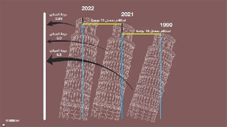 وجدت دراسة أجريت مؤخرا أن الهيكل الشهير قد تسلل في وضع مستقيم بمقدار 1.6 بوصة على مدار العشرين عامًا الماضية بفضل أعمال التثبيت.