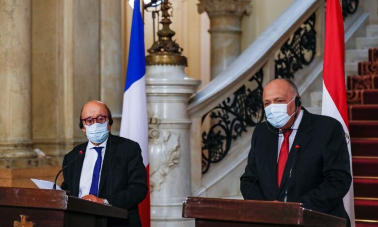 وناقش الوزيران الأوضاع في ليبيا. وقال لودريان إن فرنسا ومصر تتفقان على المطالبة “بانسحاب المرتزقة الأجانب واحترام حظر الأسلحة الذي تفرضه الأمم المتحدة”.
