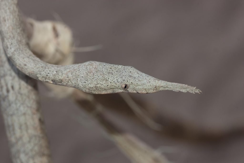 ثعبان ذات أنف ورقي له طرف أنفي غريب يكون مدببًا عند الذكور ويشبه الأوراق عند الإناث هذه الثعابين السامة ترتاح على الأشجار وتتدلى أنفها من الفروع، ويتأرجح الثعبان بنشاط مع الريح مما يروج هذا للتمويه.