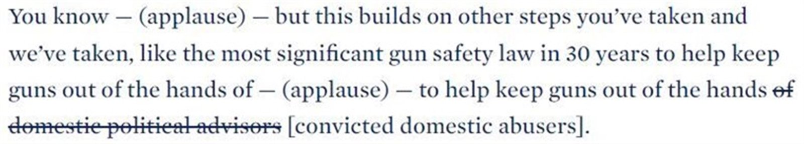وفي النص الذي نشره البيت الأبيض شطبت عبارة “المستشارين السياسيين المحليين” وكتب بين القوسين ما مقصودا، أي “المعتدون المنزليون المدانون”.