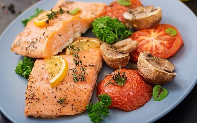 سلمون مشوي بالمشروم للرجيم وصفة خفيفة ومناسبة لوجبة غداء، جربيها وتمتعي بطعم السمك الطيب
