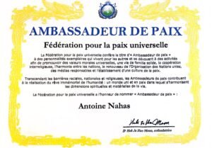 اللبناني الكندي انطوان نحاس سفيرا للسلام لدى Universal Peace Federation