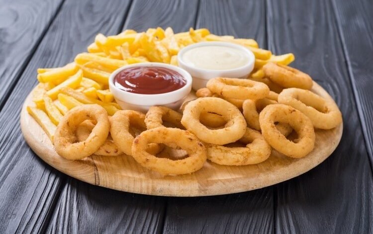 - اقلي حلقات البصل في الزيت إلى أن تصبح مقرمشة ويكتسب لون بني فاتح ثم صفيه من الزيت وضعيه على محارم ورقية.