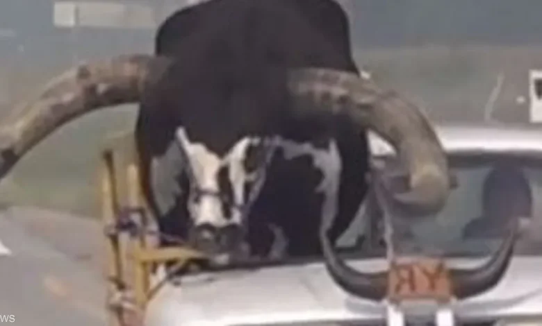 فيديو لثور في سيارة.. الشرطة تتدخل بعد الحادثة العجيبة