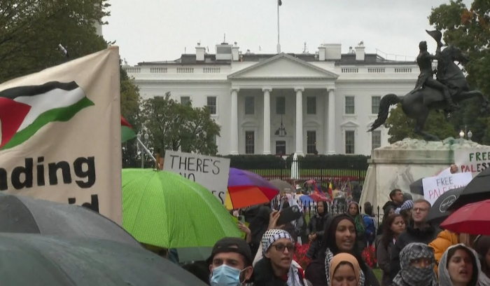 آلاف المؤيدين للفلسطينيين يتظاهرون أمام البيت الأبيض