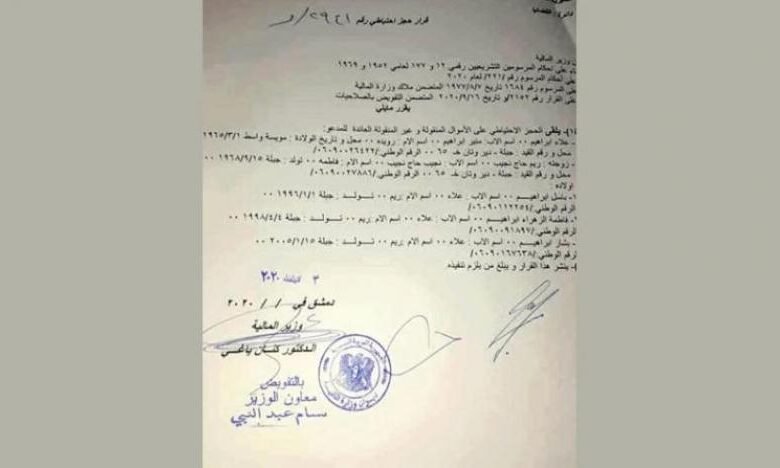 أصدرت وزارة المال السورية قرارا بالحجز على أموال محافظ ريف دمشق علاء إبراهيم وزوجته وهي ابنة خالة الرئيس بشار الأسد، بعد يومين من قرار الأخير إعفاء المحافظ من منصبه.
