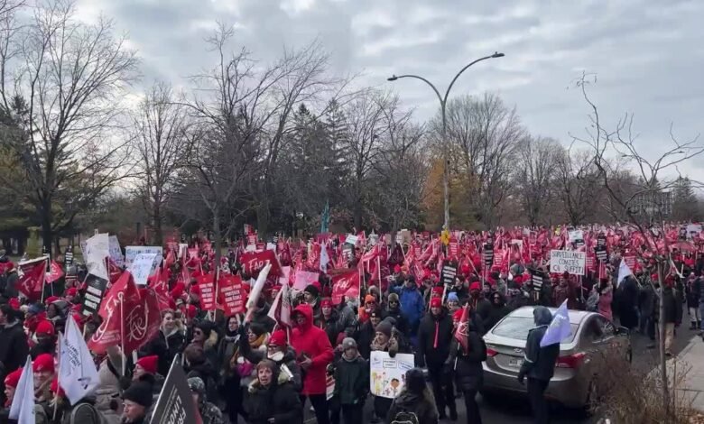 وكان أعضاء ’’الجبهة النقابية المشتركة‘‘ قد تجمعوا للاحتجاج أمام مبنى الجمعية الوطنية في كيبيك البارحة، في اليوم الثالث والأخير لحركة إضرابهم، وقد استجاب آلاف موظفي القطاع العام للدعوة إلى التظاهر التي أطلقها قادة كونفدرالية النقابات الوطنية (CSN) ومركزية نقابات كيبيك (CSQ) واتحاد عمال كيبيك (FTQ) وتحالف الموظفين المهنيين والتقنيين في مجال الصحة والخدمات الاجتماعية (APTS).