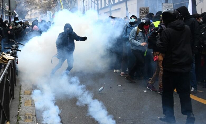 وسرعان ما فضّت المسيرة بعد تسلل مجموعة مؤلفة من “400 إلى 500 عنصر راديكالي” إليها، وفق مصدر في الشرطة، مشكلين “كتلة سوداء” من ناشطين من اليسار المتطرف.