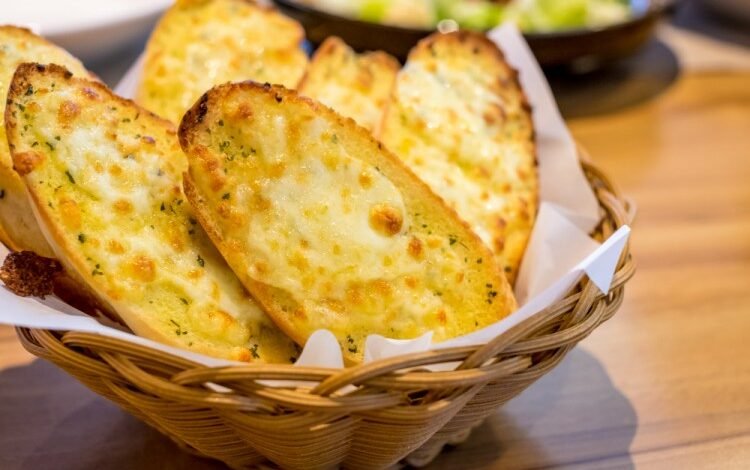 - وزعي خبز الثوم المقرمش في طبق التقديم، وقدميه ساخناً.